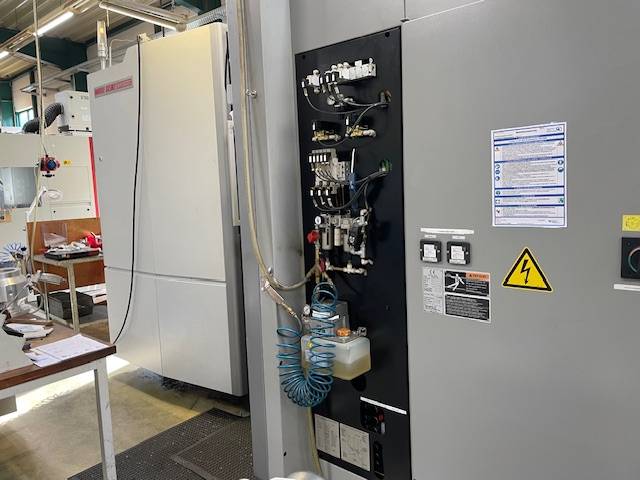 Maschine kann unter Strom nach Absprache besichtigt werden. Die Maschine befindet sich noch in laufender Produktion.